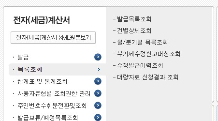 조회/발급에는 세금계산서 조회및 발급이 가능하고 현금영수증 조회도 가능합니다.
