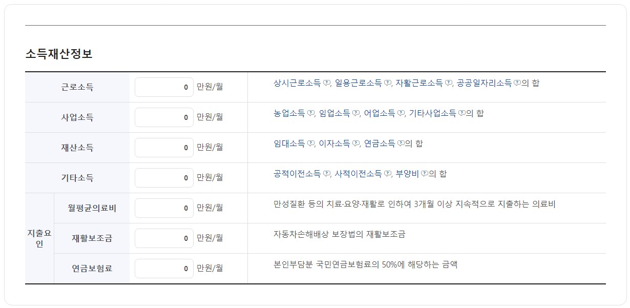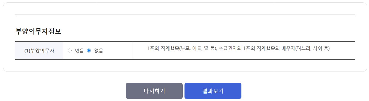 부양의부자 정보를 입력하고 결과보기를 누르면 여러분이 입력하신 기본 정보를 바탕으로 소득인정액을 확인할 수 있습니다.