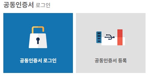신청을 완료하면 공동인증서 로그인을 클릭하여 보안 프로그램 설치를 완료 후 공동 인증서 로그인 후 공동인증서 등록을 완료하시면 됩니다.