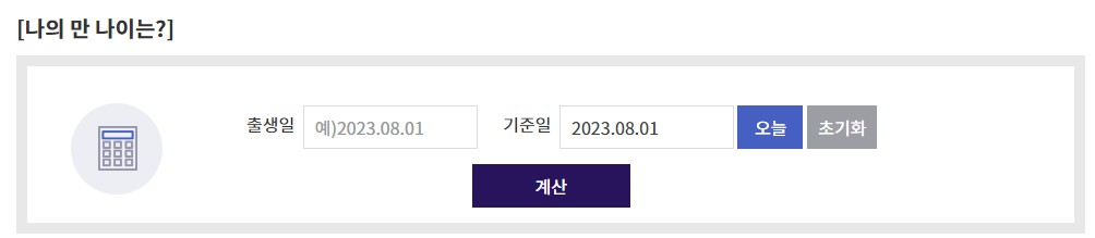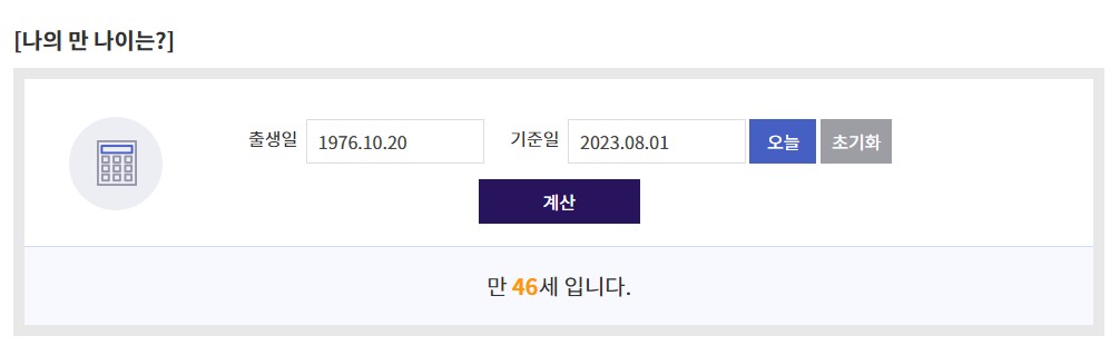 계산을 누르면 아래와 같이 계산기를 통해 여러분의 만나이를 간편하게 확인할 수 있습니다.