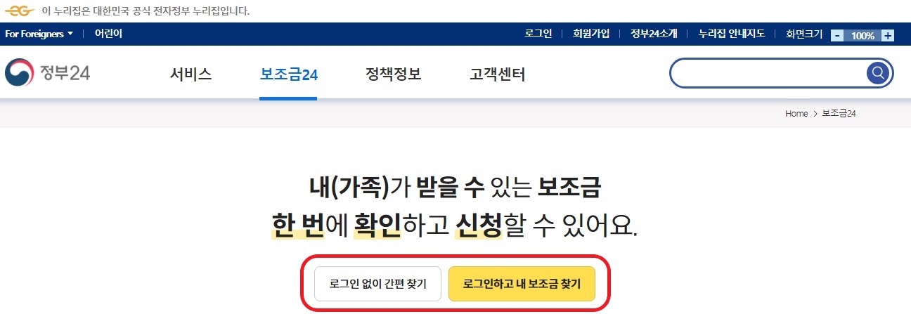 1. 보조금 24 홈페이지 접속하기